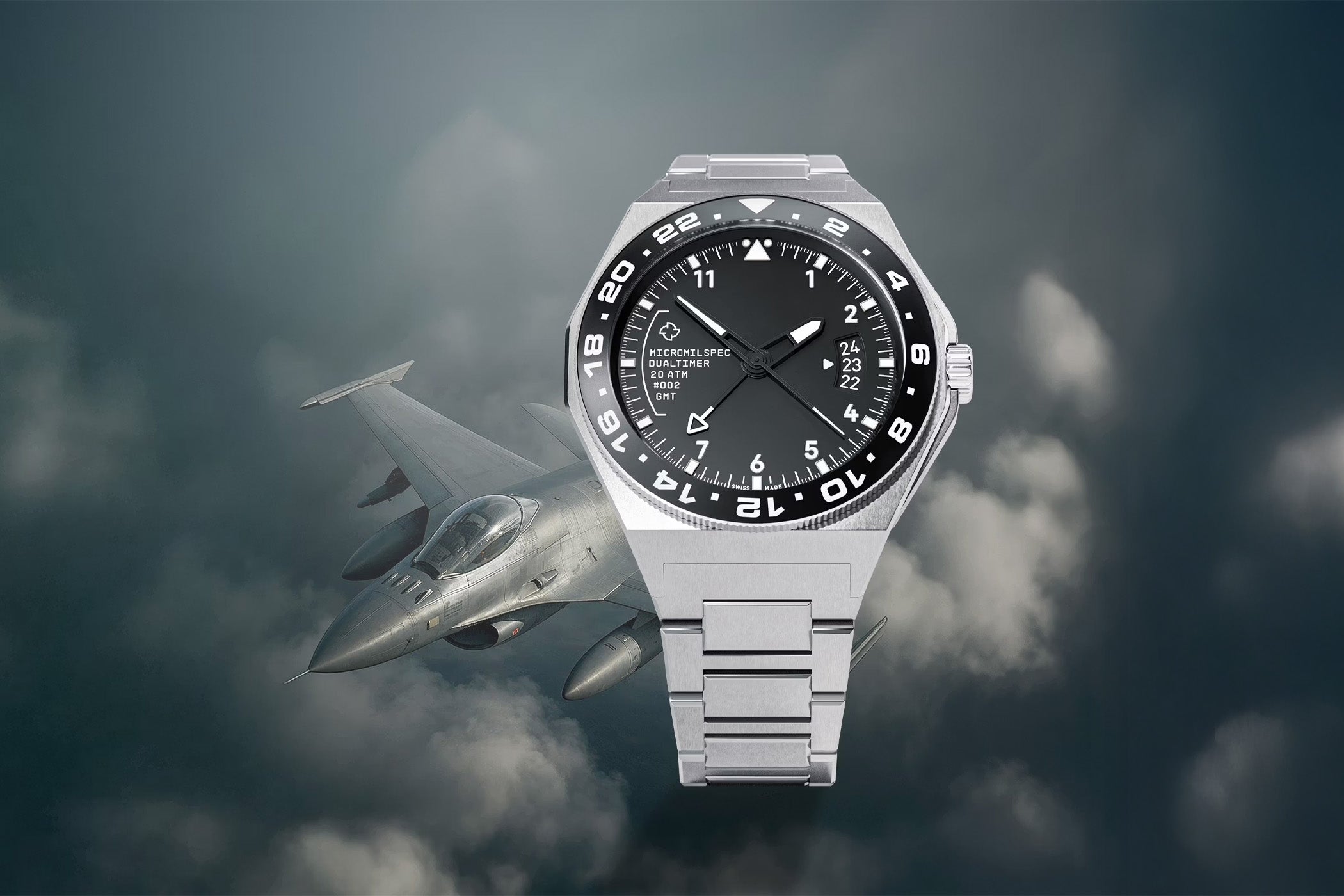 The Micromilspec Dualtimer – Pilot GMT is a modern, legible, and robust pilot's watch designed to display two time zones at a glance. Its 42mm stainless steel case, water-resistant to 200m, houses a Swiss Sellita GMT movement with a 56-hour power reserve. Limited to just 75 pieces, it is aimed at enthusiasts of technical and functional timepieces.